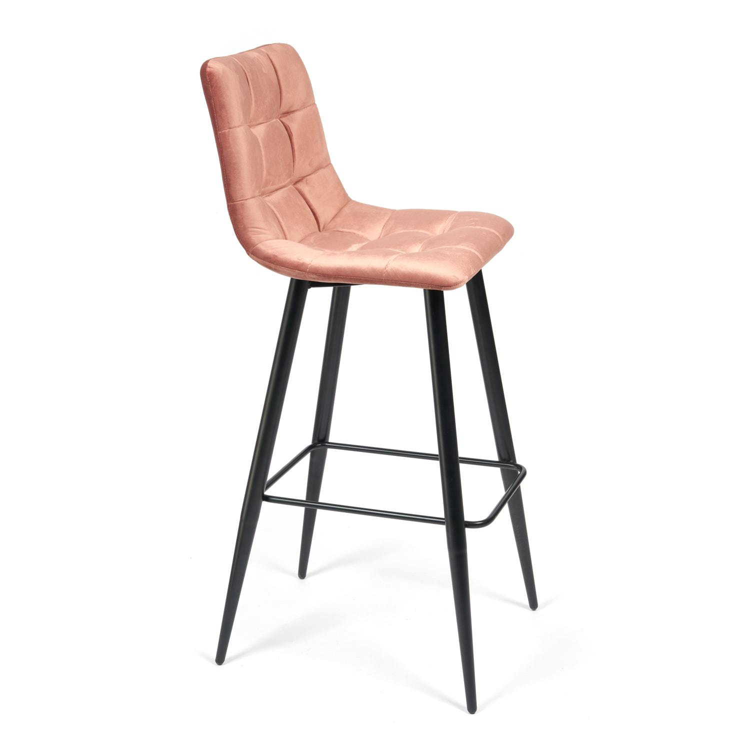Стул барный Chilly (mod. 7095) на монолитном каркасе из многослойного гнутоклееного шпона толщиной 10 мм. Наполнение - комбинация пенополиуретанов различной плотности. Обивочный материал – велюр, с мягкой бархатистой текстурой. Квадратная отстрочка внутренней части сиденья и спинки. Ножки из металла с порошковым покрытием и пластиковыми подпятниками.