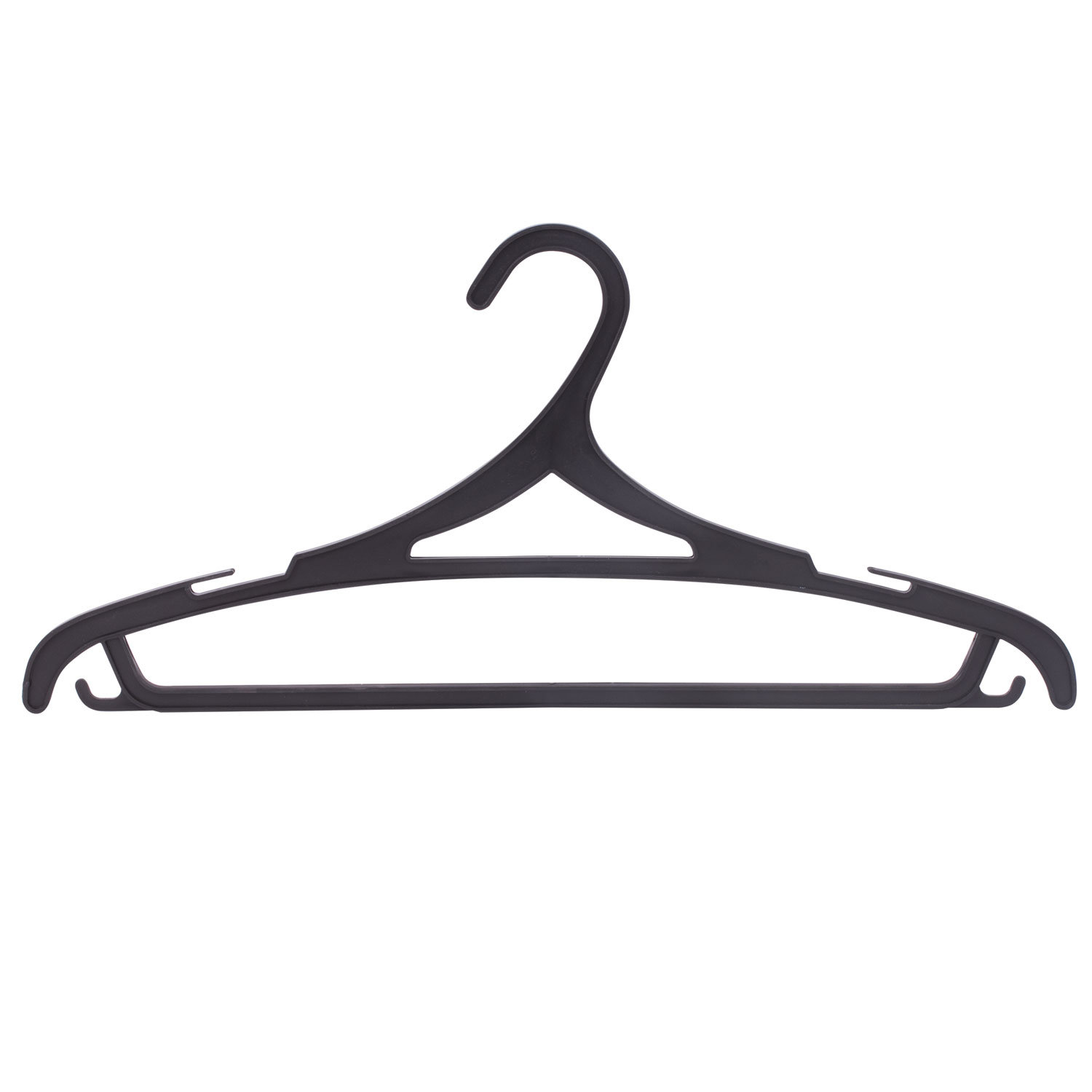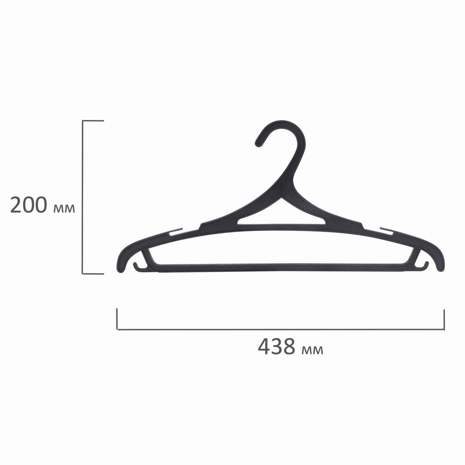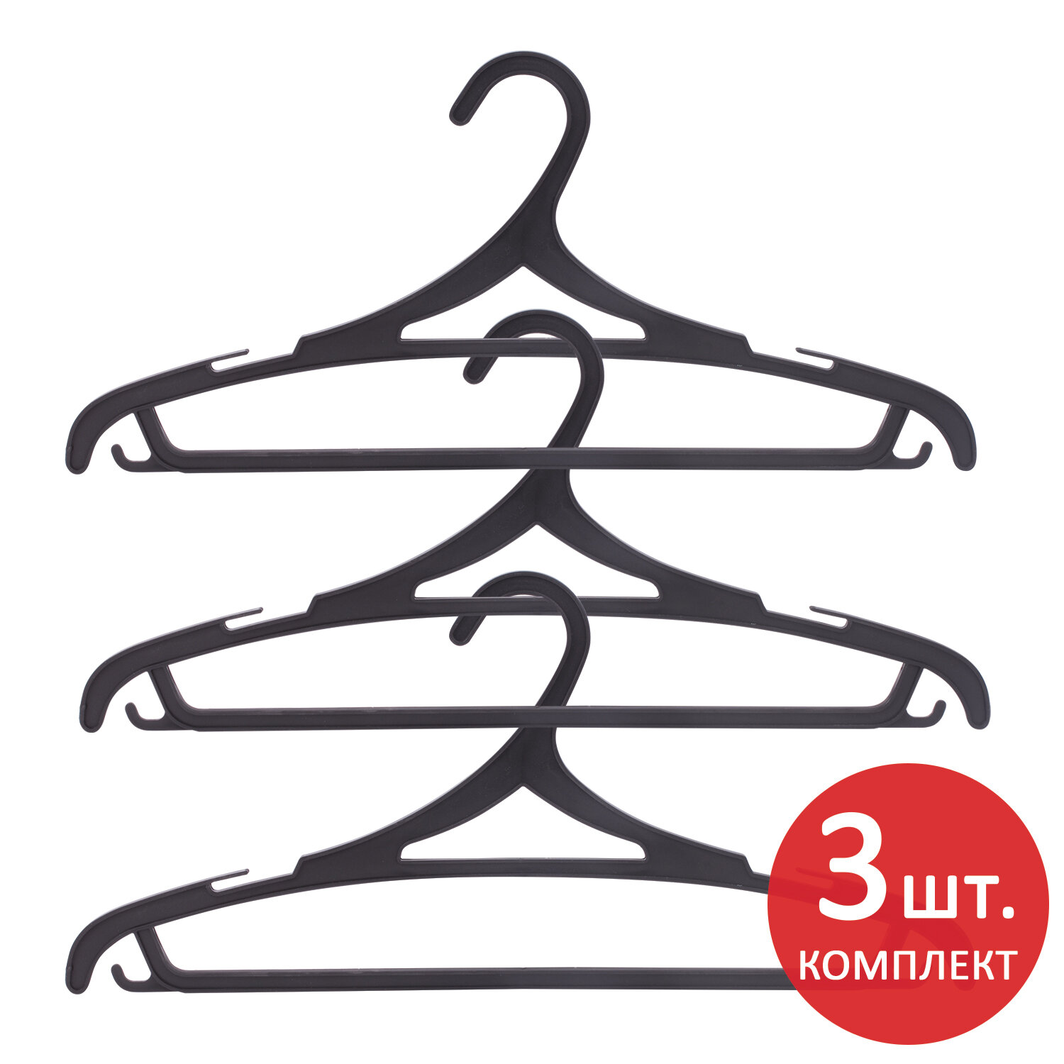 Материал каркаса: пластик. Размер модели: 46-48. Ширина: 43 см. С перекладиной: да. Крепление для брюк и юбок: выемки, крючки. Количество в комплекте: 3 шт. Цвет каркаса: черный
