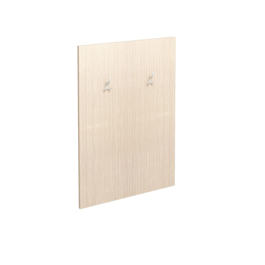 Вешалка КР 720 представляет собой прямоугольную панель шириной 90 и высотой 130 см из ЛДСтП «зебрано песочный» толщиной 16 мм, облицованную по периметру кромкой ПВХ толщиной 2 мм в цвет ЛДСтП. На панели с лицевой стороны имеются два крючка для одежды и головных уборов. С обратной стороны установлены потайные элементы для подвески на стену.